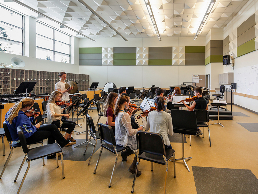 The project involved the phased construction of a new 100,000 SF Performing Arts Center at the occupied Liberty High School. The scope of work included selective demolition and the construction of a new building that houses a Culinary Arts area, a kitchen with a loading dock, and a west end chiller. The facility also features a main theatre with an orchestra pit, control booth, and stage, along with a choral practice room, instrumental room, grand lobby entry, classrooms, and a smaller Black Box theatre. Additionally, site work includes the relocation of parking areas and six tennis courts, the installation of water, gas, and sewer utilities, new landscaping, and the implementation of new storm drainage systems, including a detention pond and a rain garden.